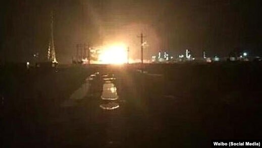 Pictures on Chinese social media showed a large fireball rising from what appeared to be an industrial area in Dongying, located in the eastern province of Shandong province late Monday.