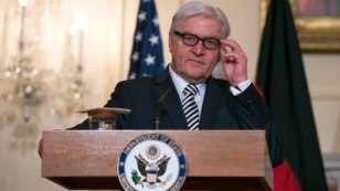 Foreign Minister Frank-Walter Steinmeier spoke Thursday in Washington after talks with U.S. Secretary of State John Kerry. He told an audience at the Center for Strategic and International Studies that giving such weapons to Ukraine could send the ongoing conflict spinning "out of control."