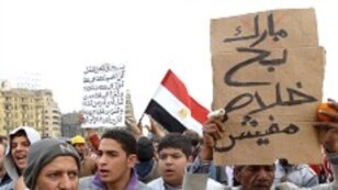 Some demonstrators have moved out from Tahrir Square, taking up positions in front of Egypt's parliament. They vow not to stand down until President Hosni Mubarak and the government do the same.
