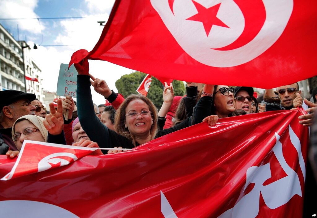 Hundreds of Tunisians marched Friday through Tunis, not only marking the 59th anniversary of the country's independence from France but also rallying against terrorism, two days after a deadly attack at Tunisia's national museum.