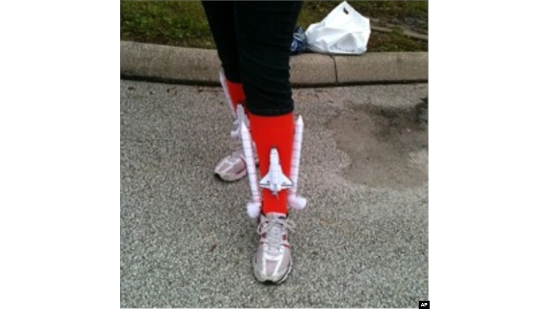 US Space shuttle fan sports her "shuttle socks" ahead of Atlantis launch at Kennedy Space Center in Florida, July 8, 2011
