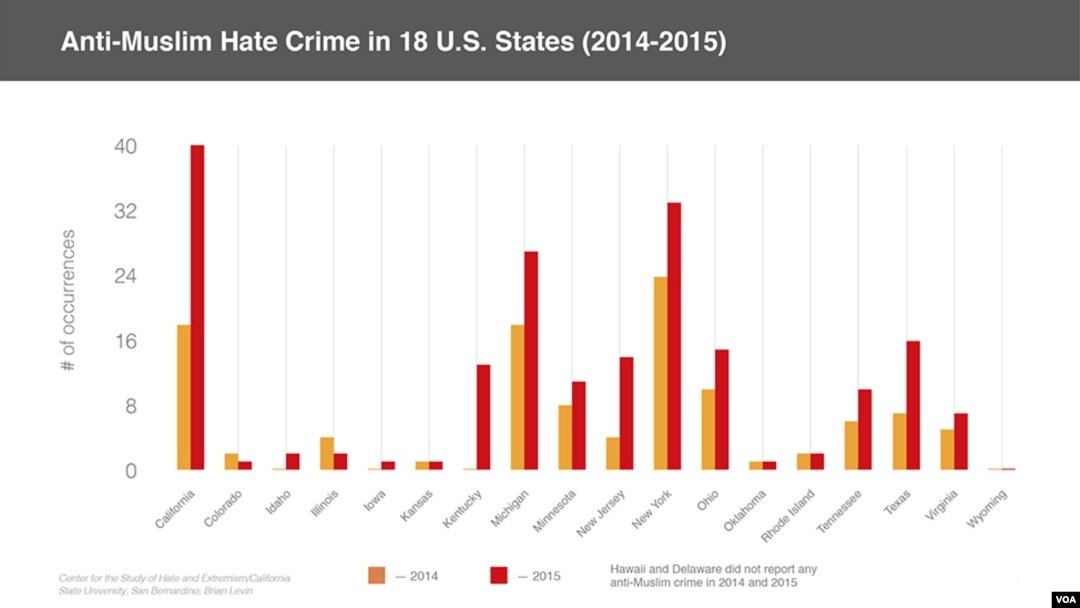 Anti-Muslim Hate Crime in 18 U.S. States