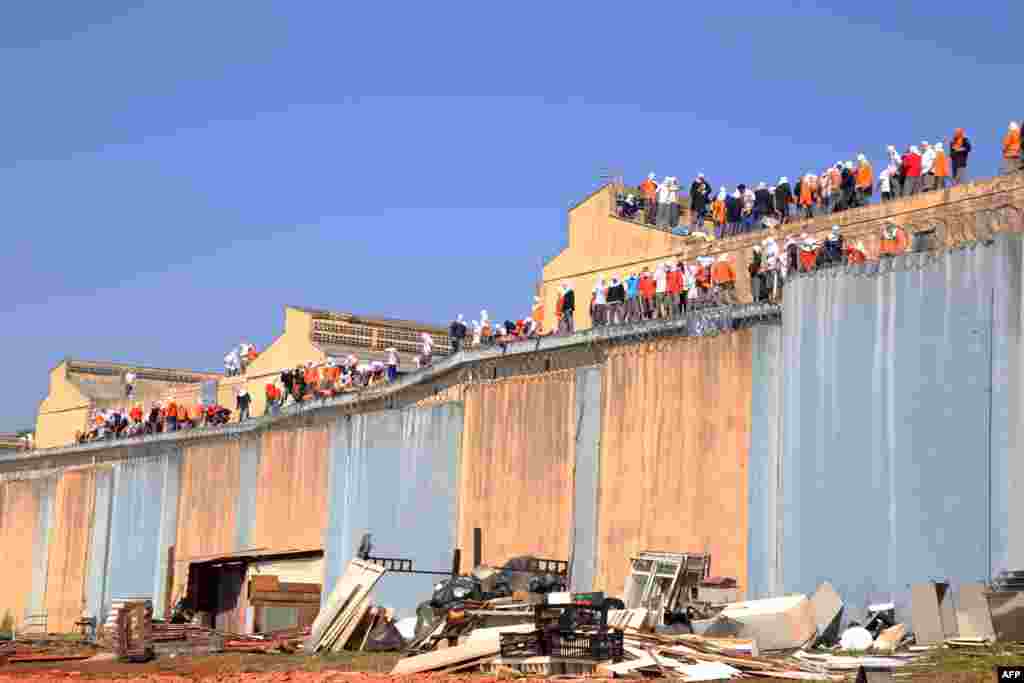 Inmates stand on the roof of the penitentiary in Cascavel, Parana state, Brazil. Inmates rioting for better facilities in the jail killed four fellow prisoners, decapitating two of them, and took two guards hostage, officials said.
