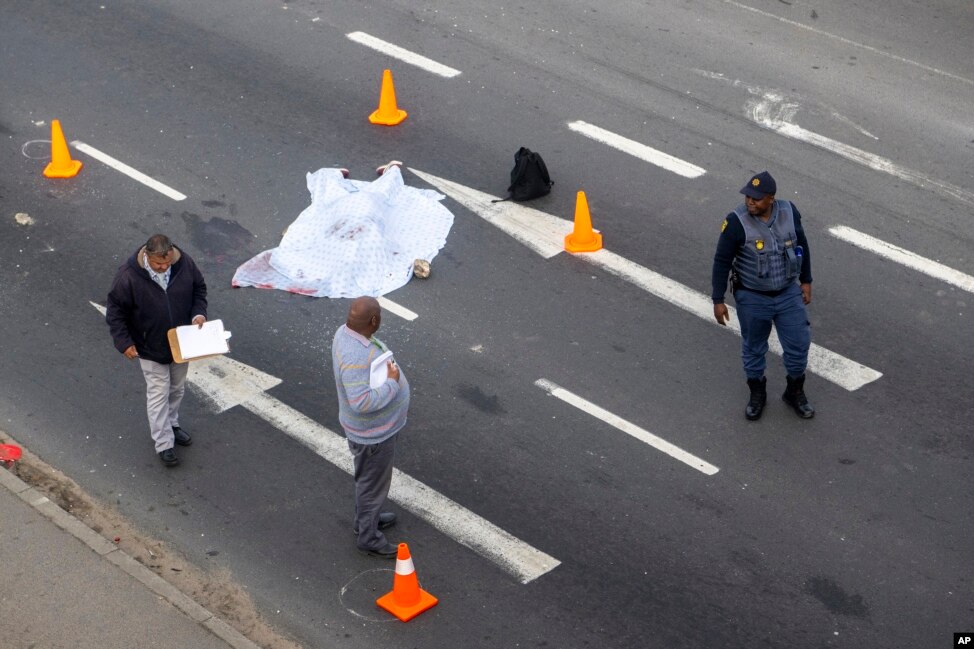 The protests began last Thursday after minibus taxi drivers called a weeklong strike in response to what they said were heavy-handed tactics by police and city authorities in impounding some of their vehicles. The national union that oversees the minibus taxi industry says their drivers are being unfairly targeted by authorities for minor offenses, such as drivers not wearing safety belts.