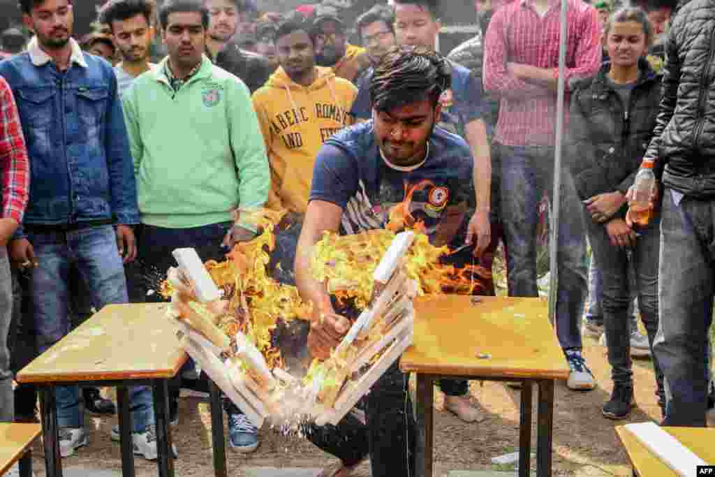 A student demonstrates his karate skills during the annual sports meeting at Shahzada Nand College ground in Amritsar, India.