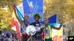 Keitany, whose best New York showing was third place in 2011, widened her lead at the end as she crossed the line in 2:25:07, three seconds ahead of Sumgong in tying the closest women's finish in the New York race.