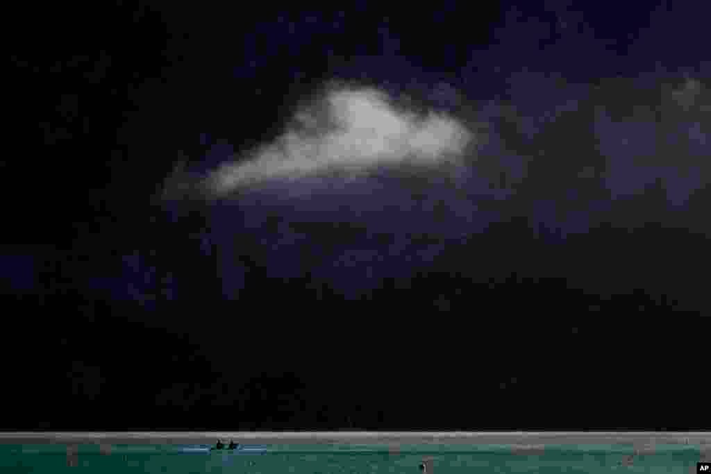 Rowers warm up in the morning during the World Rowing Championships in Aiguebelette, France.