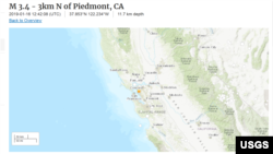 The U.S. Geological Survey (USGS) reported the 7.2-mile (11.6 km) deep earthquake at 3.7 magnitude in the Oakland, California, area, at about 4:42 a.m. PST (1242 GMT). Reuters witnesses were among many who felt buildings tremble, but there were no immediate reports of damage.