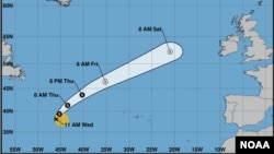 The U.S. National Hurricane Center says the storm's maximum sustained winds Wednesday are near 40 mph (65 kph) with some additional strengthening possible over the next day.