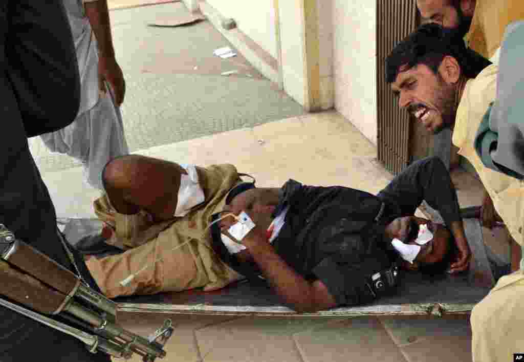An injured man is transported to the hospital in Quetta, Pakistan, August 9, 2013.